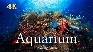 【4K】お家で水族館|リラックス音楽と海の自然音